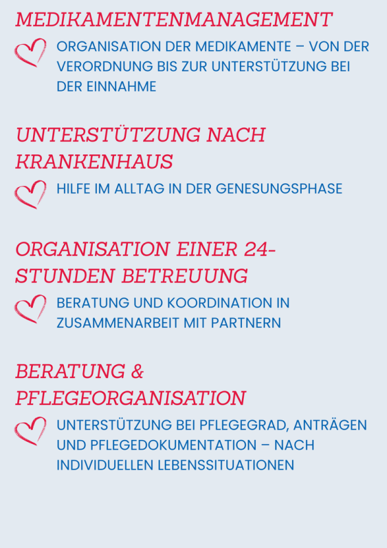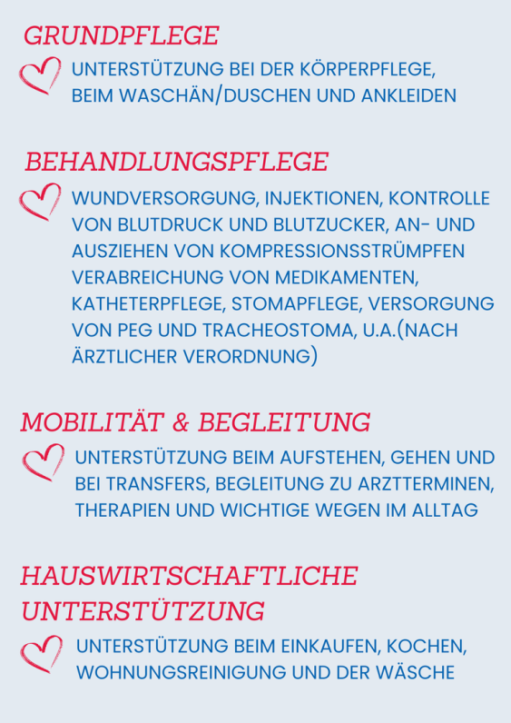Ob mediziniscche Pflege, Unterstützung im Alltag oder Begleitung in besonderen Lebenssituationen